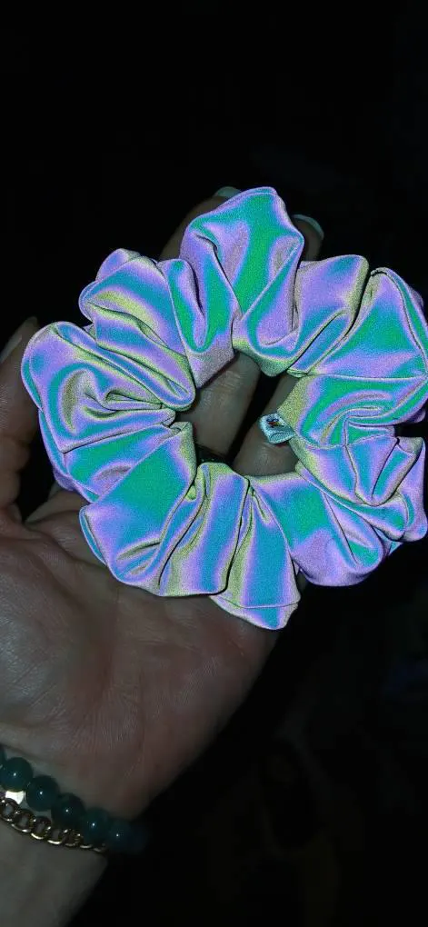 These scrunchies are a standout fashion accessory! When light hits this special fabric, iridescent rainbows are reflected back!